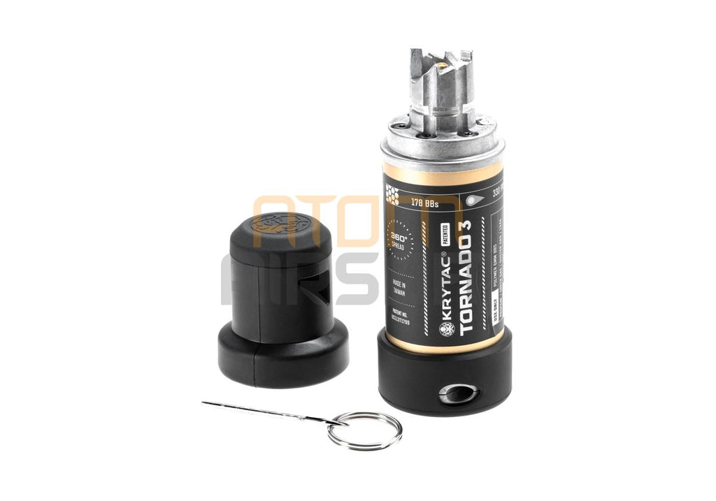 Krytac Tornado 3 perustuu Airsoft Innovationsilta (AI) hankittuun patentoituun teknologiaan: toimivaksi todettua rakennetta on kehitetty vielä pidemmälle. Kranaatin ytimessä on kolmiportainen säädettävä ajastin, joka antaa täyden kontrollin käyttöön. Tarvitsetko välittömän räjähdyksen vai viiveellä laukeavan toiminnan, jotta kranaatti ehtii nurkan taakse tai huoneeseen? Tornado 3 on tehty tuottamaan paras mahdollinen teho eri tilanteissa. Tehostettu ~100,6 m/s ulostulo (1 J), täysi 360° kuulalevitys sekä päivitetty CNC-koneistettu alumiinirakenne tarjoavat vahvemman ja luotettavamman suorituskyvyn heitosta toiseen.