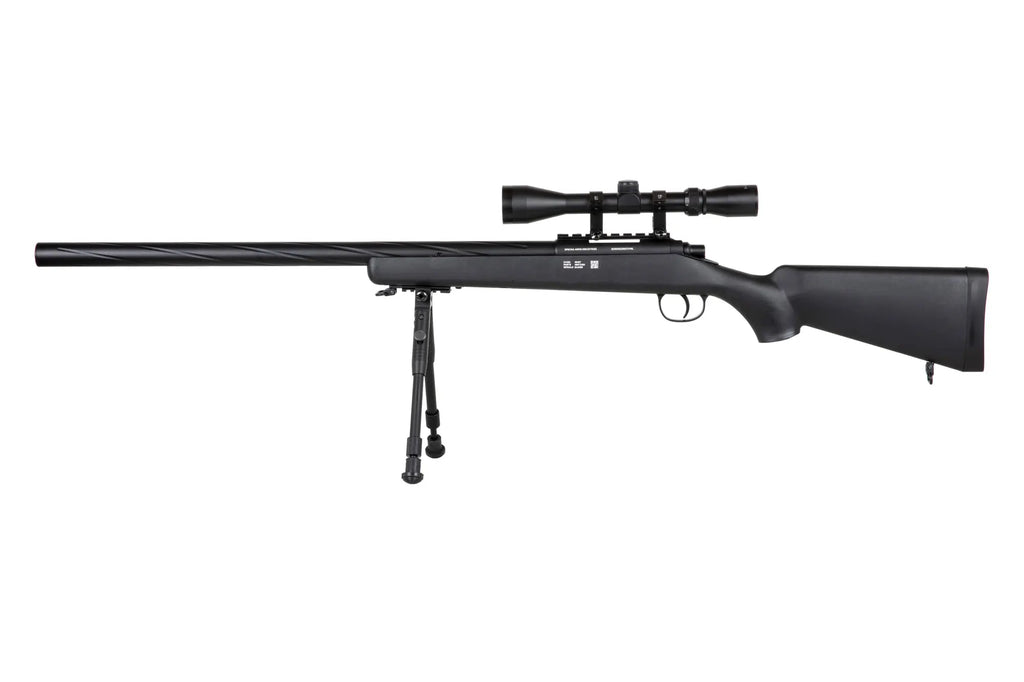 Specna Arms SA-S12 on pulttilukkoinen airsoft-tarkkuuskivääri, joka on suunniteltu pelaajille, jotka arvostavat tarkkuutta ja luotettavuutta. Pitkän kantaman tilanteisiin rakennettu ase on käyttövalmis suoraan laatikosta, mikä tekee siitä käytännöllisen valinnan sekä kokeneille tarkka-ampujille että rooliin vasta siirtyville. Tämä replika on rakenteeltaan jämäkkä: siinä on metallinen piippukokonaisuus ja kestävä polymeerinen tukki, jotka tarjoavat tasapainoisen tuntuman pidempien pelien aikana.