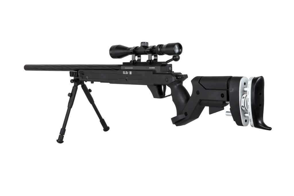 Specna Arms SA-S13 on jousitoiminen tarkkuuskivääri, joka on suunniteltu tarjoamaan tarkkuutta ja luotettavuutta suoraan pakkauksesta. Se on tarkoitettu pelaajille, jotka arvostavat johdonmukaisuutta ja hallittavuutta. Kivääri yhdistää kestävät sisäosat ja käytännölliset ulkoiset ominaisuudet tehokkaaksi pitkän kantaman ratkaisuksi.