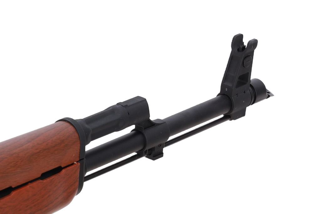 Internally, the replica is equipped with a rotary hop-up chamber for consistent accuracy and a robust gearbox with reinforced components for long-term reliability. The spacious battery compartment under the dust cover is LiPo-ready, ensuring compatibility with modern power sources. The included S-MAG mid-cap magazine provides smooth feeding, and the replica is compatible with most magazines from popular brands like Cyma, JG, E&L, and Bolt (other brands may require minor fitting).